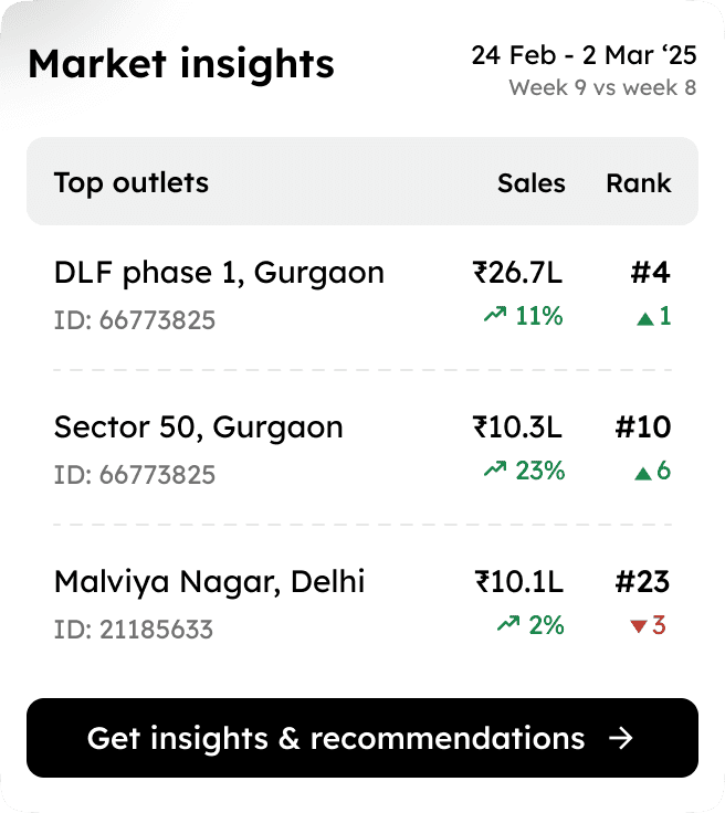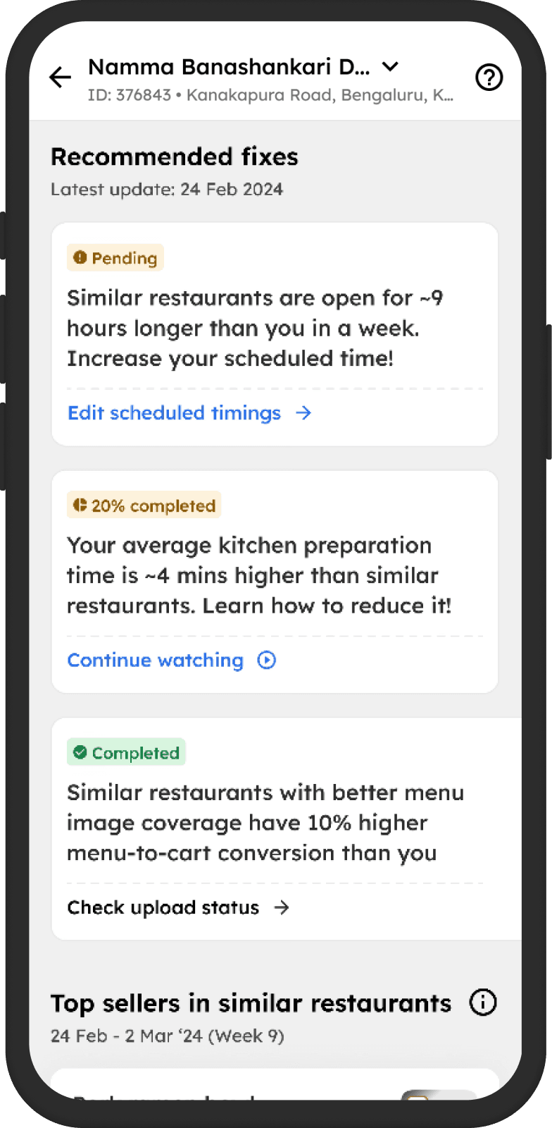 The data existed: delivery times, menu overlap, local competition. But it was fragmented. Without peer comparison, he couldn't diagnose if the problem was his menu, his delivery speed, or new competition. Generic recommendations like "run ads" felt like Zomato extracting money, not helping him compete.