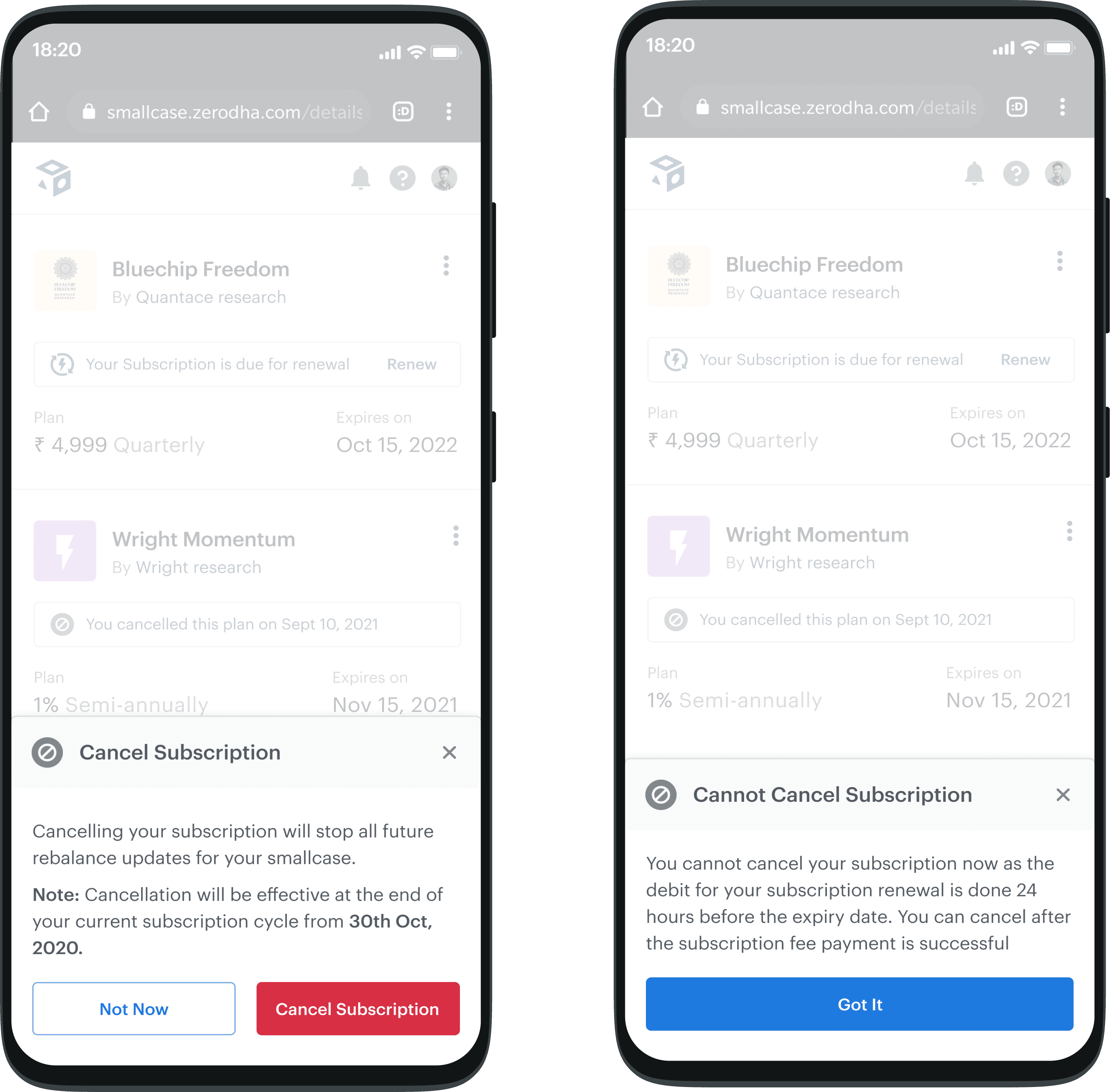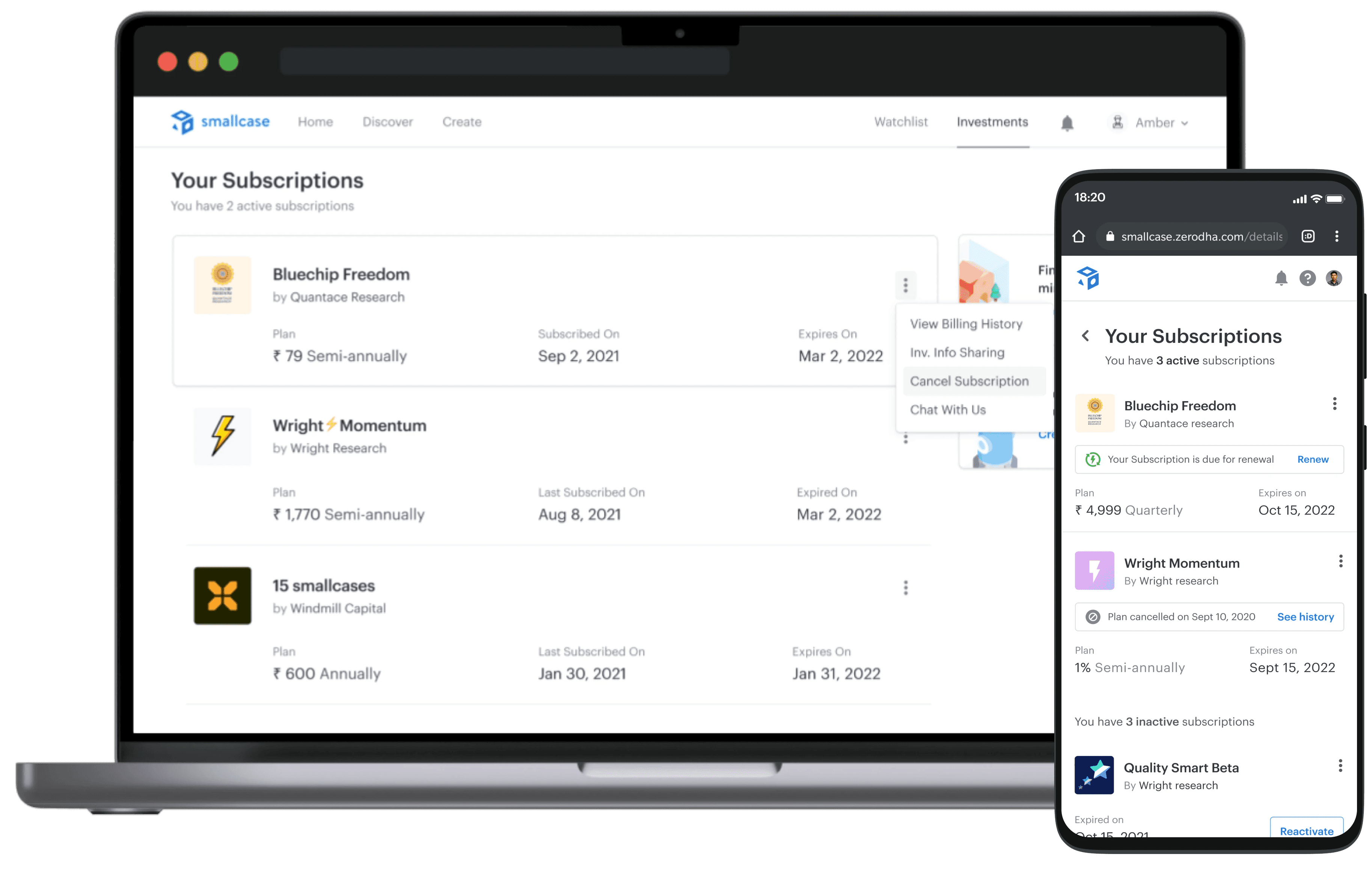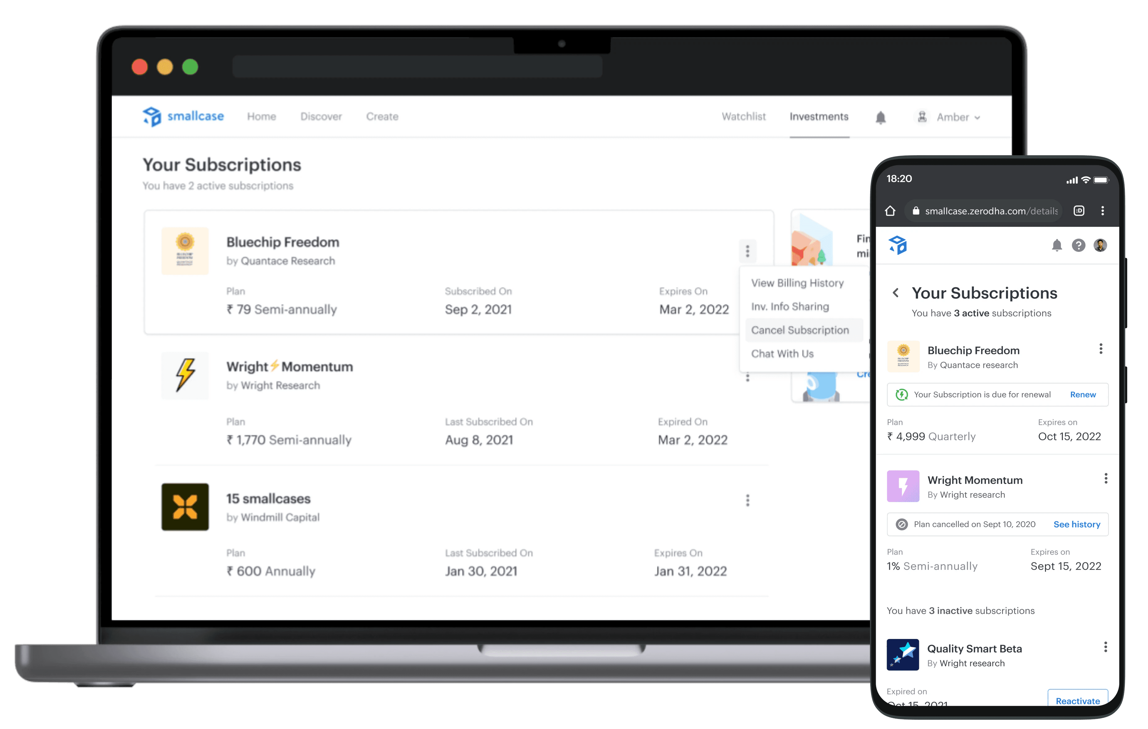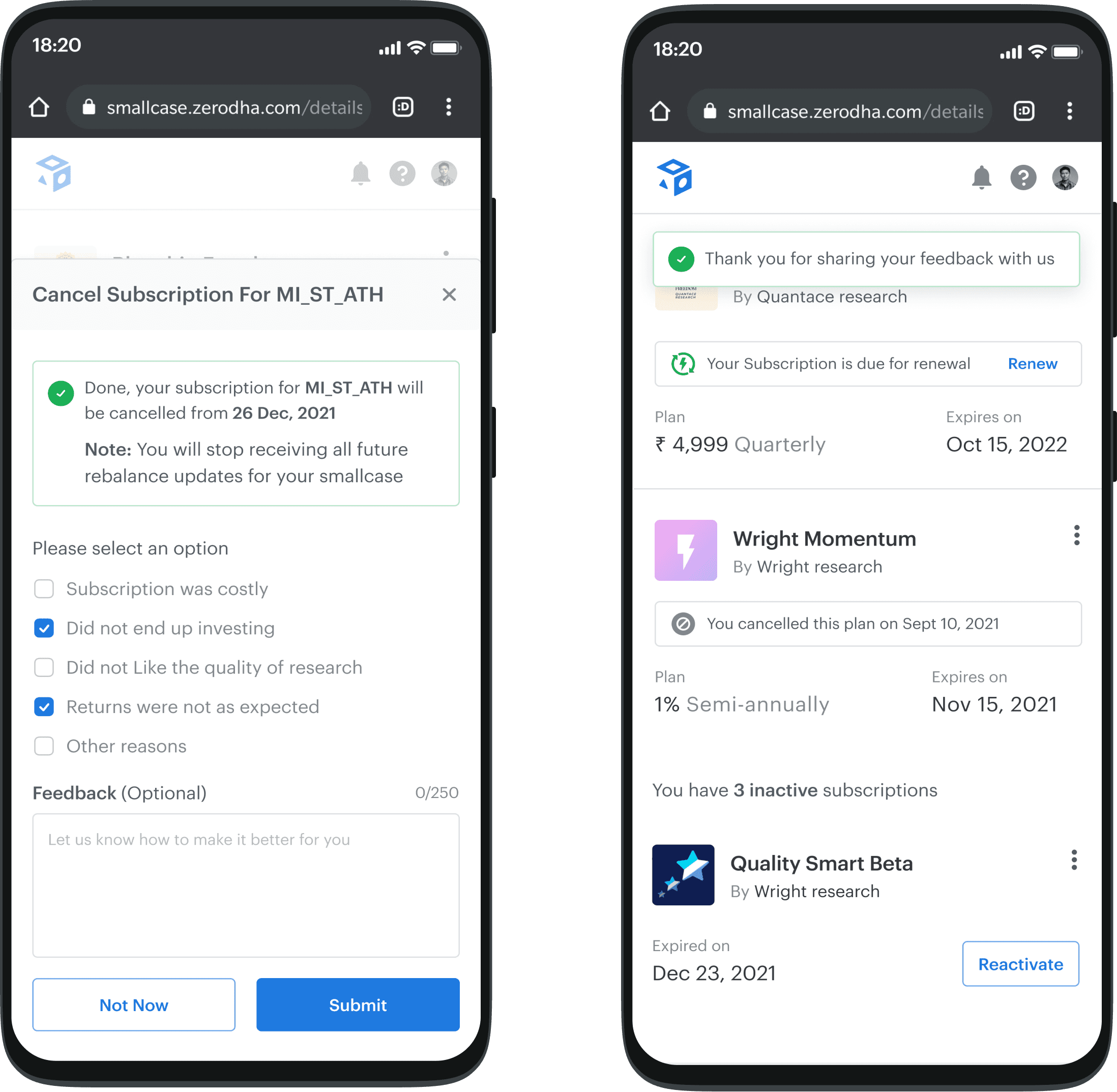 As smallcase grew, users increasingly subscribed to multiple advisor but had no single place to see, manage, or exit those subscriptions. Control was fragmented across advisor microsites, emails, and memory, creating anxiety around money and frequent accidental renewals.